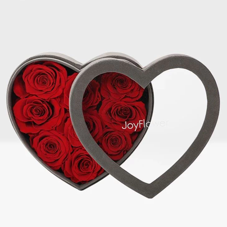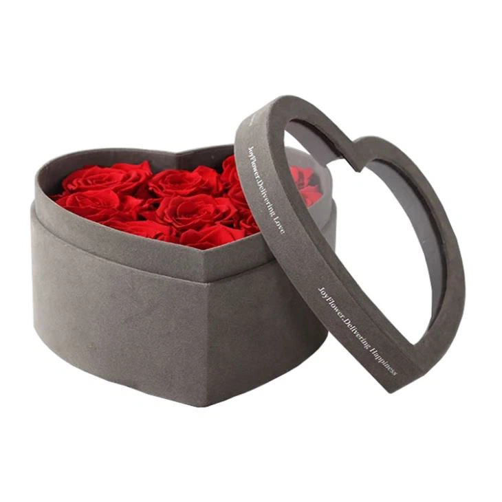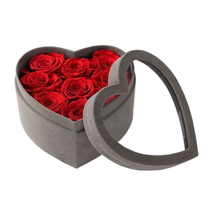 Omutima ogufaanana .bbaasa eziteekebwako okupakinga .Ebimuli ebirabo, size is customized, ebintu ebikoleddwa mu flannel paper mounted 1000gsm solid grey cardboard, custom logo white foil ku box ne pvc etangaavu ku kino ekisinga obulungiEbimuli by'ekibokisi ky'amadirisa, .
